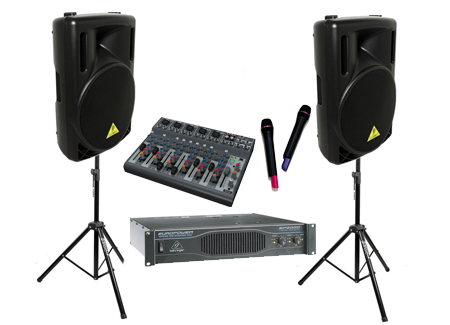 - Behringer Eurolive B212XL + Europower EP2000: 2 satellite speakers. Passive speakers. 400 W continuous / 1.6kW peak system. With 2kW amplifier.